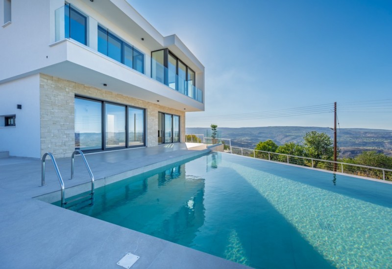 Designed to blur the boundaries between indoor and outdoor living, the villa has been carefully positioned to capture breathtaking uninterrupted views across the rolling Polis Chrysochous valley and out to the sparkling Mediterranean Sea.