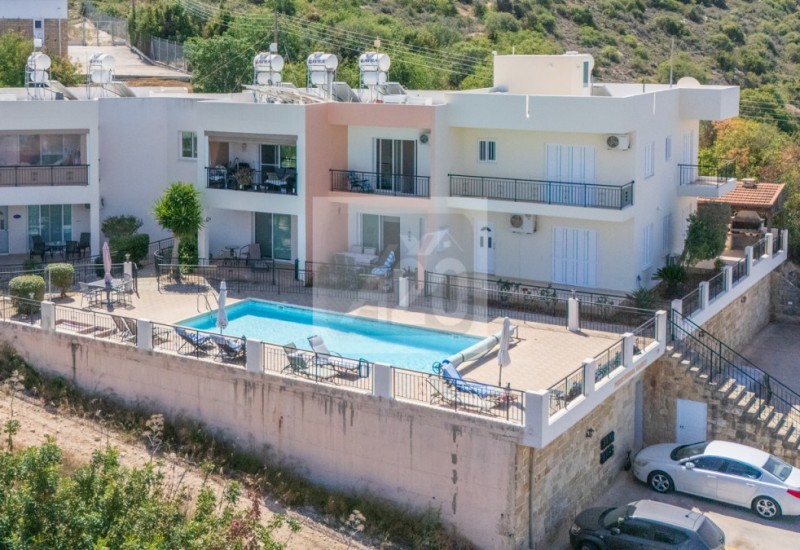Step out onto the front terrace, which overlooks the inviting communal swimming pool where you will find plenty of sunbeds to relax on while taking in the stunning panorama beyond. At the rear, you'll find a partially decked back terrace with a handy shed, described by the current owners as a real suntrap – ideal for soaking up the Cypriot sunshine.